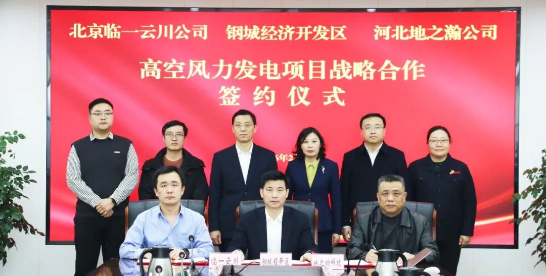 2月9日,钢城经济开发区与北京临一云川能源技术有限公司、河北地之瀚科技有限公司签订高空风力发电项目战略合作协议,钢城经济开发区党工委副书记、管委会主任陈庆宏,北京临一云川能源技术有限公司市场总监刘文彬,河北地之瀚科技有限公司总经理李利民参加活动。