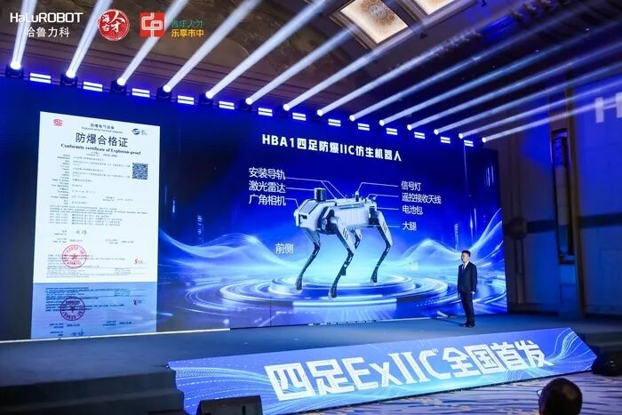 在石化厂区、地下矿井、应急救援现场等最危险的“无人之境”,未来或将更多出现一道道稳健的“钢铁身影”。2月6日下午,山东哈鲁力科智能装备有限公司在济南山东大厦正式发布其自主研发的防爆ⅡC仿生四足机器人HBA1。该产品成功通过目前国内最高等级防爆认证(Ex db ec mc ⅡC T4 Gc),一举填补了我国在四足机器人细分领域的技术空白,意味着中国智能装备正式具备了在最高等级易燃易爆环境中替代人工作业的能力。