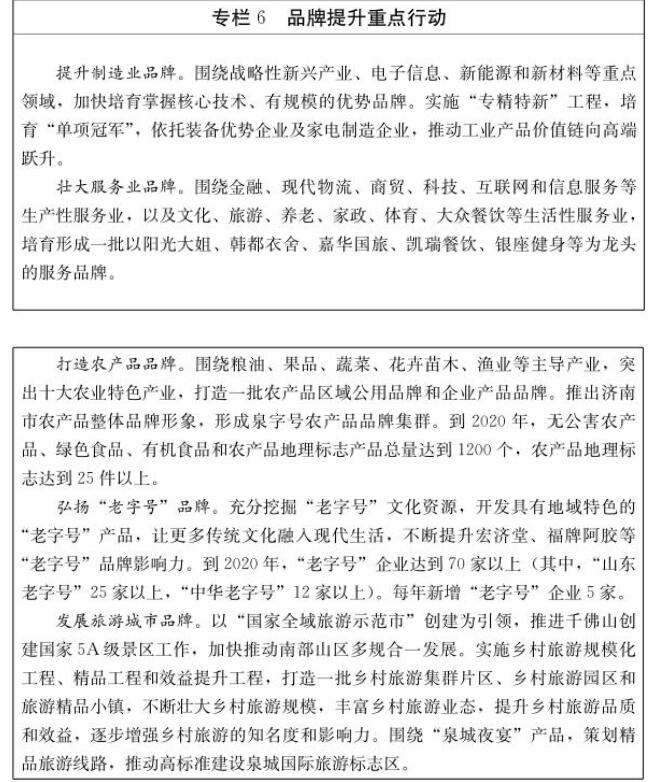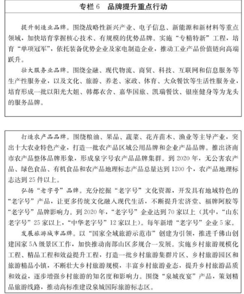 4.品牌质量引领品质经济。大力实施品牌强市战略,加快提升以自主品牌为主导的品牌创新能力,形成一批拥有核心竞争力、高附加值和自主知识产权的知名品牌,推动质量经济、品牌经济发展。