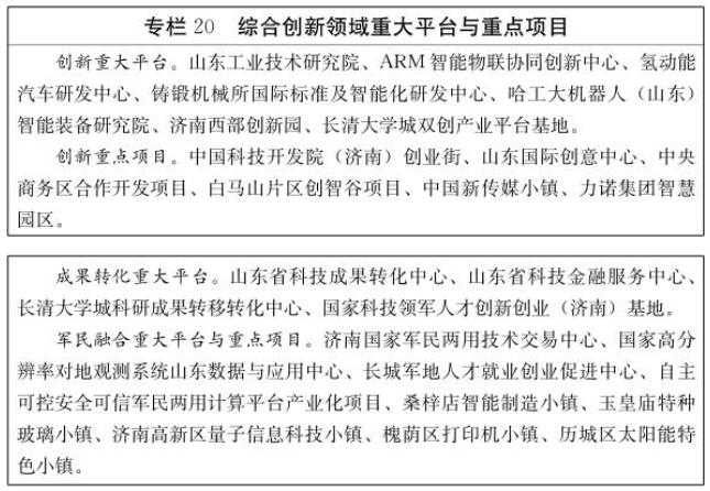 5.创新资源集聚催生新动力。科技创新资源更加雄厚,拥有国家信息通信国际创新园、国家集成电路设计产业化基地、国家超算济南中心、国家重大新药创制平台、国家级创新药物孵化基地等国家级平台载体和重大基础科研设施,入选山东半岛国家自主创新示范区、国家促进科技和金融结合试点城市、国家创新型城市试点、国家小微企业创业创新示范基地城市,已成为全球创新网络的重要节点。不断引入国内外高端科研院所,中德技术研究及产业转化中心、中关村领创空间等重大创新平台相继落户,前瞻性布局建设量子技术研究院。高层次创新型人才加速集聚,“十三五”以来引进院士、高层次专家140余人,院士(专家)工作站总数达到61个。创新成果不断涌现,2017年万人有效发明专利拥有量达到25.6件,居全省首位。创新资源的快速集聚,为提升创新能力、加快新旧动能转换提供强大动力。
