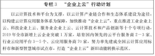 (1)实施“互联网+工业”行动计划。积极运用信息技术改造现有产业,培育两化融合服务体系,探索区域两化融合推进新路径,全面提升产品技术、工艺装备、能效标准,实现价值链向高水平跃升。大力培育发展工业互联网、工业云、工业大数据等新兴业态,以云计算技术和平台为支撑,以云计算产业链合作和生态体系建设为途径,加快推动“企业上云”,打造“企业上云”新旧动能转换示范区。开展工业互联网创新融合试点,推动制造企业开展线上线下融合、柔性制造、个性定制等制造模式创新,促进传统制造模式转型升级。