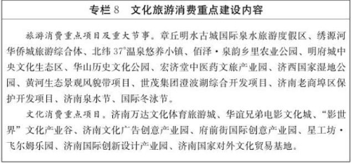 (2)大力发展文化消费。依托文化资源优势,加快推进区域文化强市建设,创建联合国教科文组织“创意城市”,积极发展创意设计、数字出版、动漫游戏、文化旅游等新兴文化业态,突出泉水文化、黄河文化等文化主题,丰富文化产品供给。支持济南国际创新设计产业园建设,打造以工业设计为核心的高端综合创新设计产业园区。支持山东影视集团创新发展,促进新闻出版等传统行业与新媒体及其他产业融合,培育一批文化企业品牌、文化市场品牌、文化创意设计品牌,建设一批优质众创空间和孵化器平台,开展国际合作、影视交易等试点,建设国家影视文化消费先行体验区和全球影视文化中心。加强线上线下渠道互动,优化影视在线支付、内容植入、版权众筹等增值服务,鼓励演艺企业开发网络应用平台或与互联网演艺平台网站开展协作,拓展线上线下相结合的演艺模式。