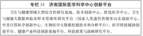5.推进生物产业创新发展。以国家重大新药创制平台、国家人类遗传资源库山东创新中心等国家级平台为依托,加快完善生物科技创新体系,支持生物医药、生物农业、生物技术服务等产业发展。